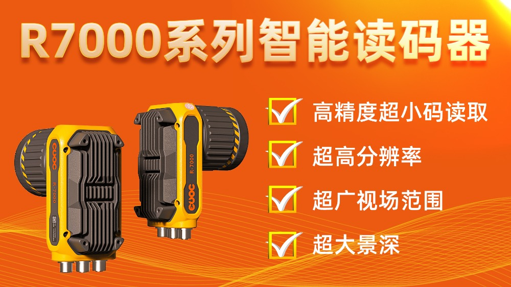 LEYUCOM银河集团智能读码器R-7000,是基于图像的扫码技术,支持一键自动变焦,在120 至 2000mm的远距离上,顺利读取密度小于0.064mm二位条码,识读范围可超350mm x 280mm。